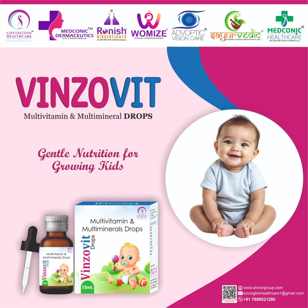 The demand for multivitamin and multimineral drops is rising steadily in India due to increased health awareness and preventive care needs. With a reliable product like VINZOVIT – MULTIVITAMIN AND MULTIMINERAL DROPS and strong company support from Shinor Biosciences, this PCD Pharma Franchise opportunity offers a stable and profitable business option for wholesalers, doctors, and MRs. It is a smart choice for those planning long-term growth in the pharma sector with Franchise Medicine Company.