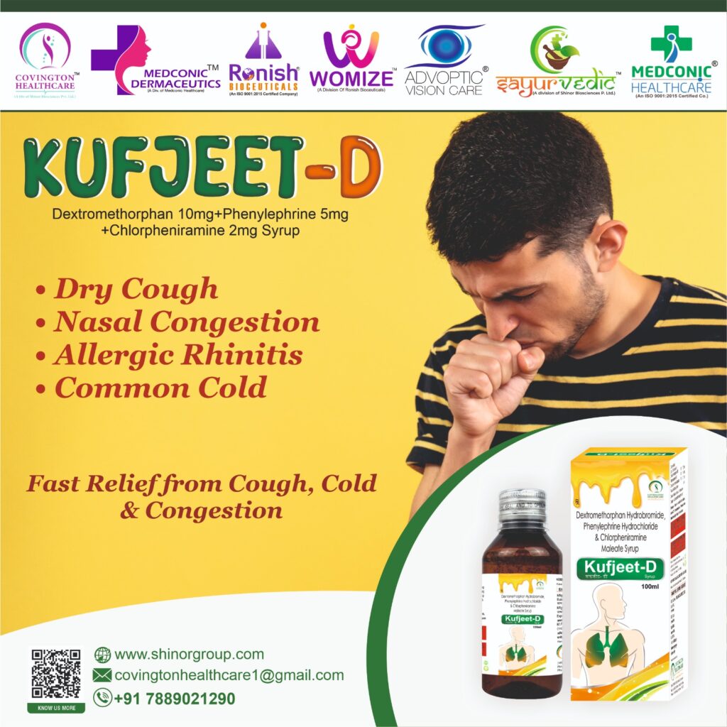 The PCD Pharma Franchise model allows wholesalers, doctors, and MRs to start their own business with low financial risk and strong profit margins. With a dependable product like KUFJEET D – DEXTROMETHORPHAN, CHLORPHENIRAMINE, and PHENYLEPHRINE SYRUP, franchise partners can grow steadily within their region. The high usage of keywords related to this syrup ensures a stable market.