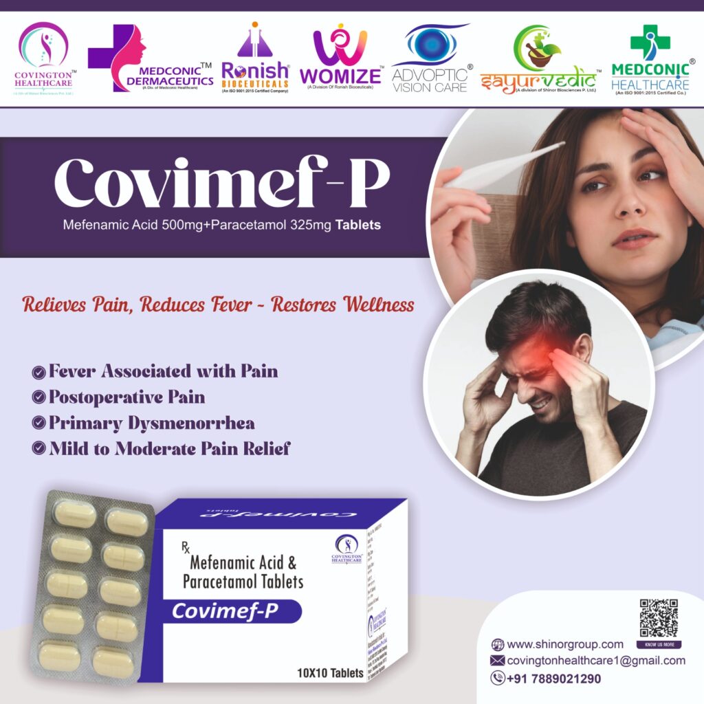 COVIMEF P – MEFENAMIC ACID and PARACETAMOL TABLETS stand out because of their effectiveness and quality. The product offers: